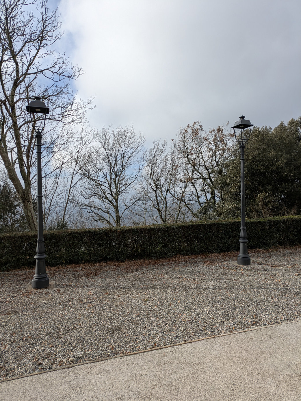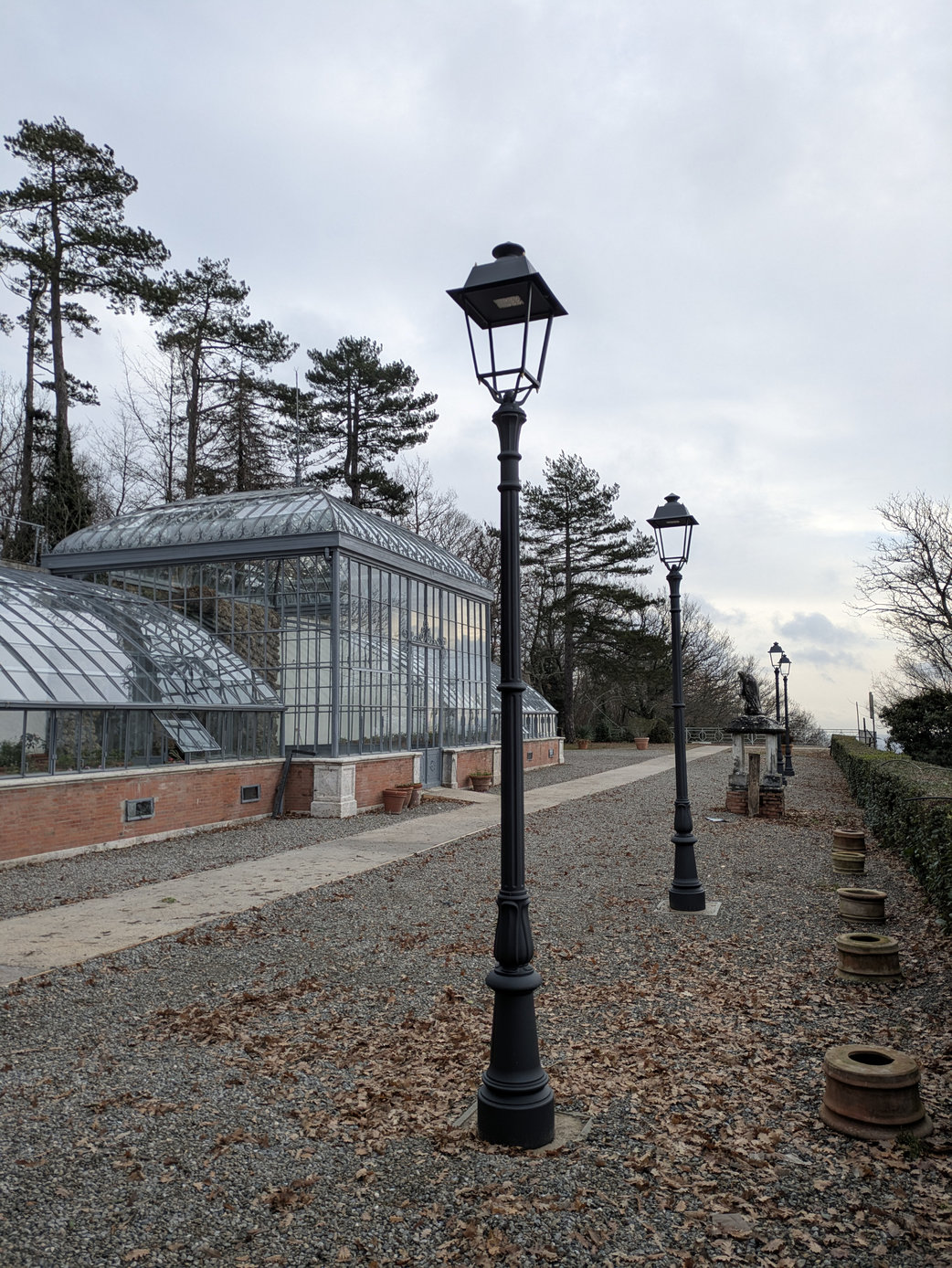 - Sostituzione di tutte le attuali lanterne dei pali dell’illuminazione pubblica con luci a LED ad alta efficienza energetica; n.6 fari a LED per l’illuminazione esterna della Villa; armadi e conchiglie per il contenimento degli organi di controllo e comando. Inserimento di n.4 lampioni nuovi a LED nella zona della serra tropicale.