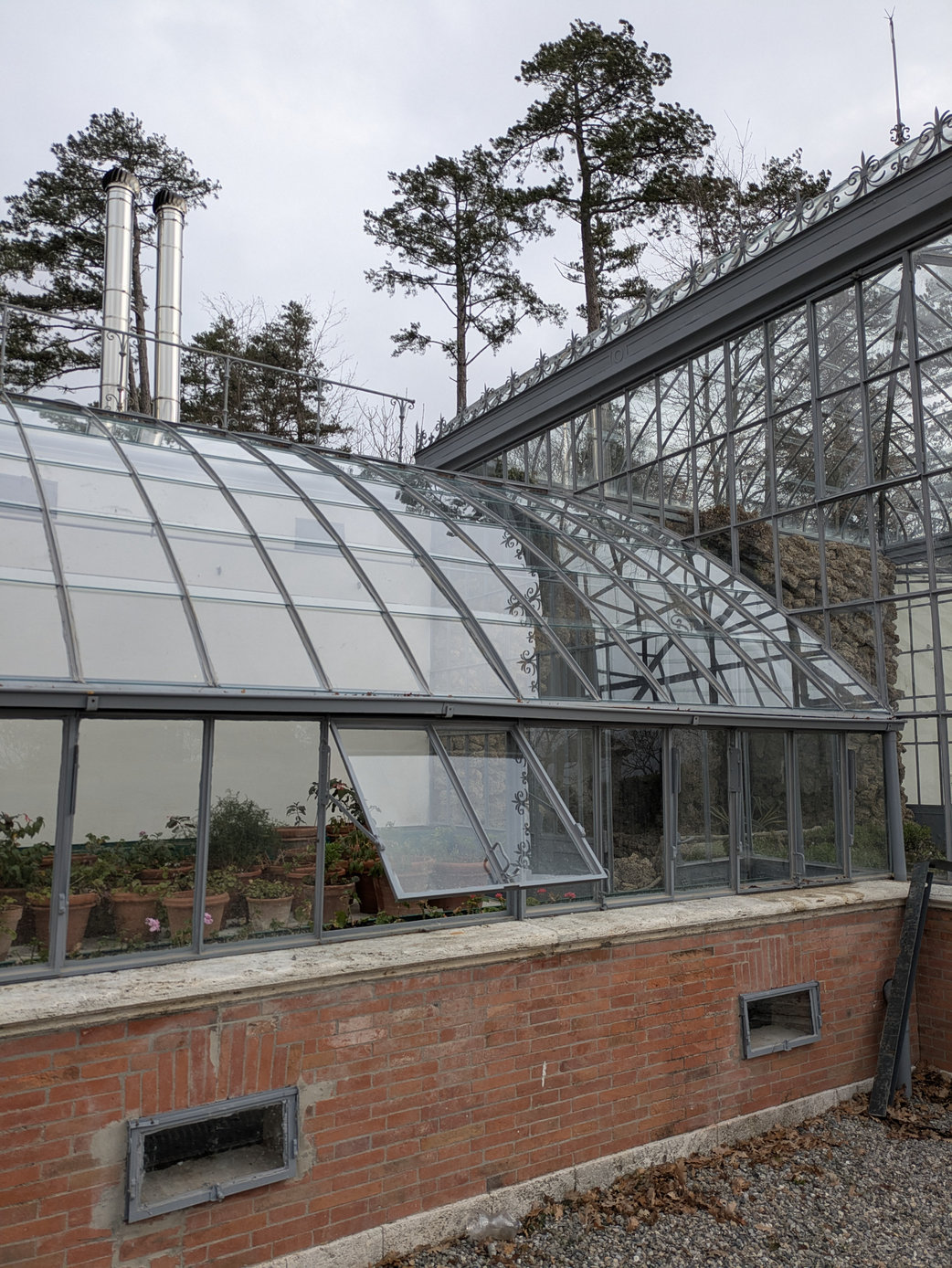 L’intervento ha previsto il consolidamento strutturale e il restauro della storica serra, con il recupero della struttura in ferro e vetro. È stato mantenuto il sistema originale di riscaldamento e areazione, basato su elementi radianti a serpentina ancora presenti in sito, insieme al sistema di umidificazione che consentiva in origine la coltivazione di piante tropicali (come le orchidee), tramite vasche d’acqua e condotti per la creazione di un ambiente umido idoneo a tali specie. Sono stati inoltre restaurati pavimenti, sottofondi e superfici interne.