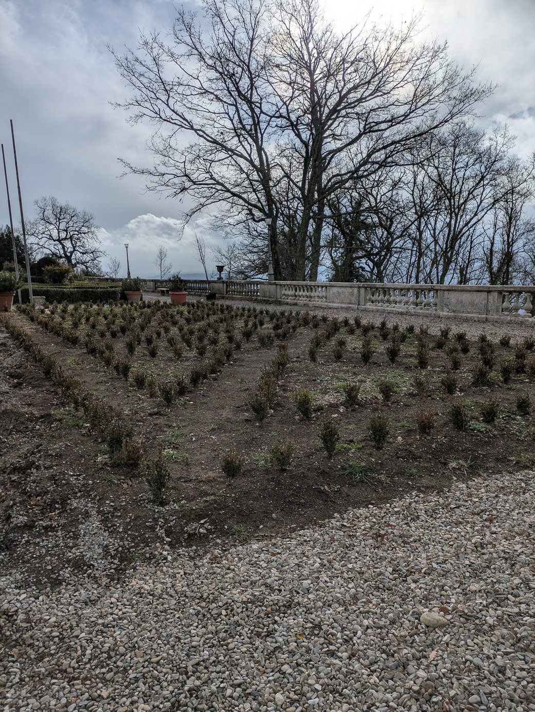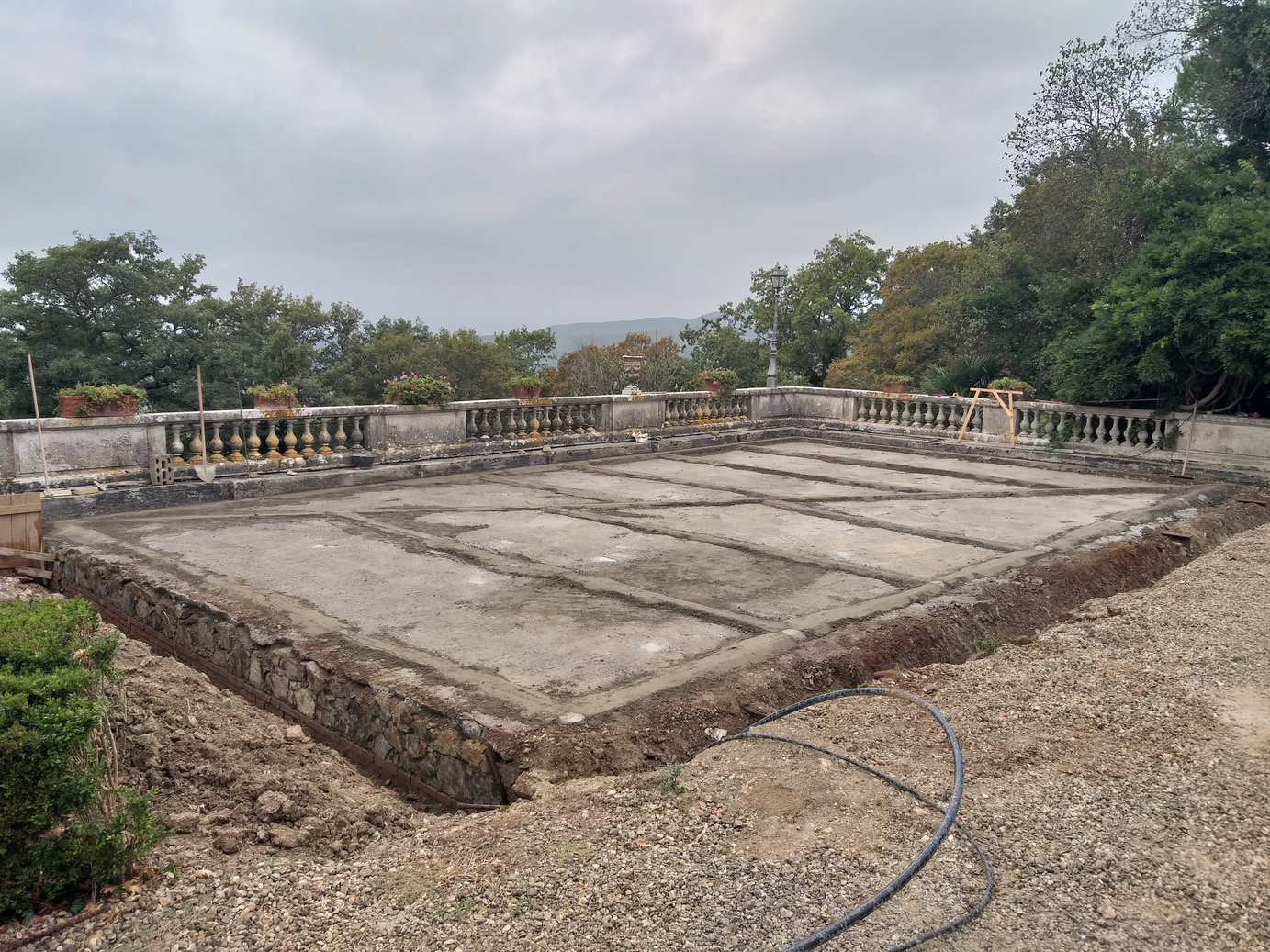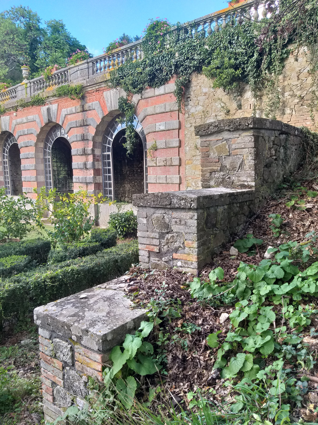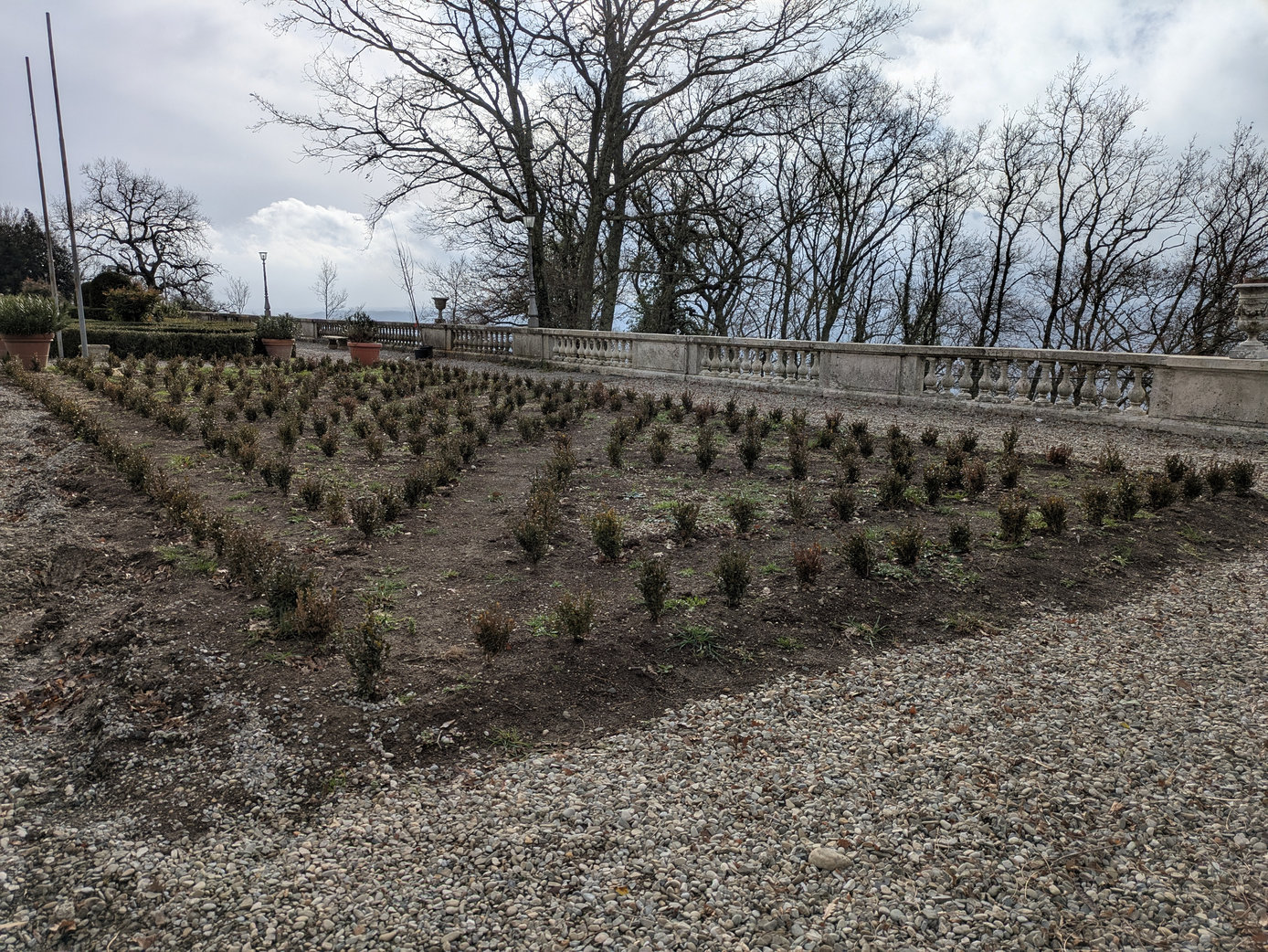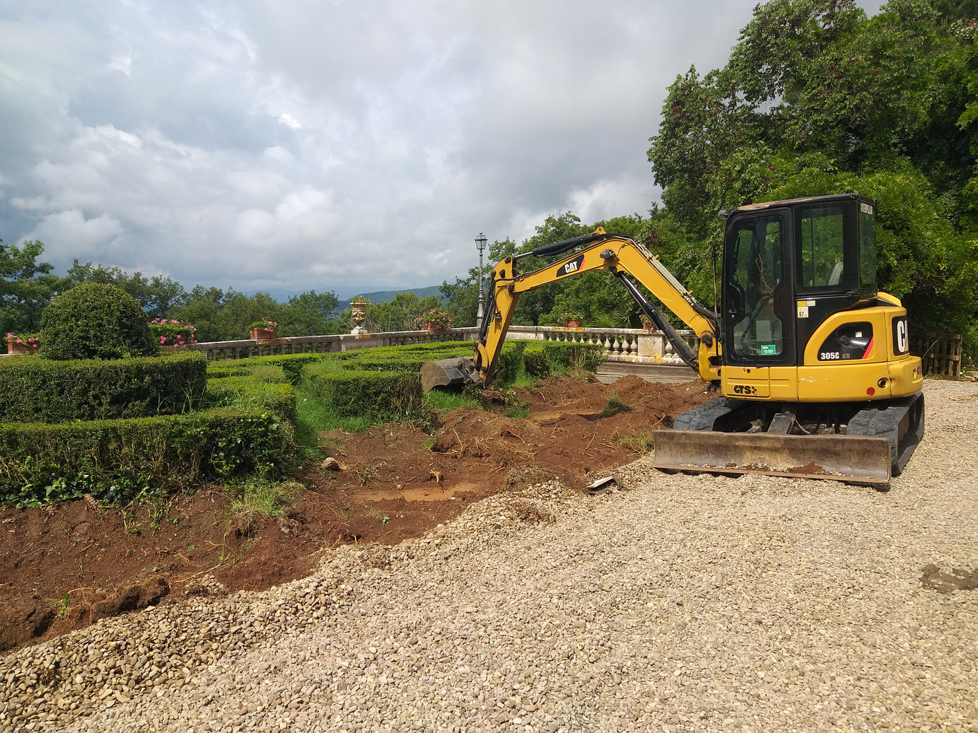 - Estirpamento delle piante di bosso del giardino soprastante e successivo ripristino seguendo il disegno originale dell’aiuola del giardino all’italiana.