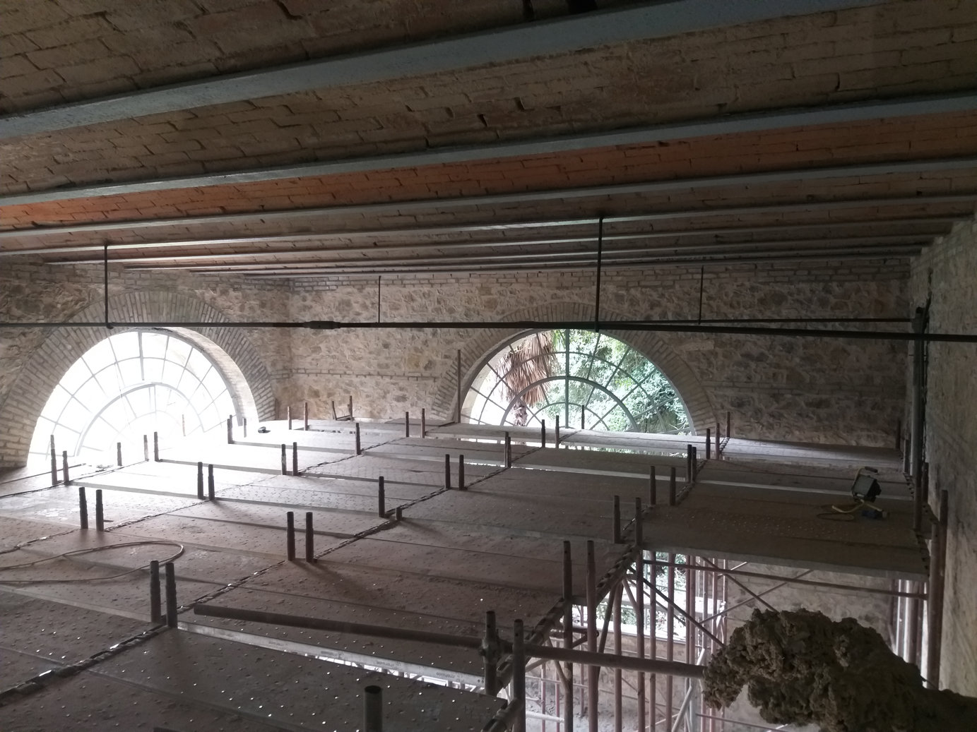 - Sabbiatura delle travi di ferro e delle voltine in mattoni del soffitto esistente.
