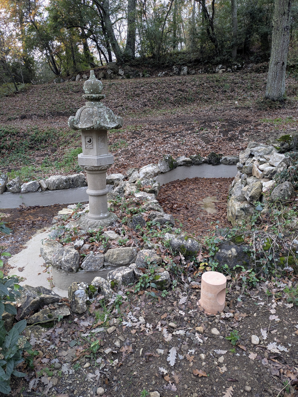 Restauro del giardino giapponese di tipo Tsukiyama, tra i primi esempi (forse il primo) di “giapponismo” presente in Italia; interventi al piano delle vasche, alle pietre di bordo, ai camminamenti e ai ponticelli, alle balaustre realizzate con cemento a simulazione di tronchi arborei, alla vasca con quinta in pietra calcarea e alle lanterne in pietra.